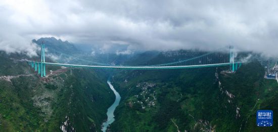 这是8月21日拍摄的贵州花江峡谷大桥(无人机全景照片)。新华社记者 杨文斌 摄