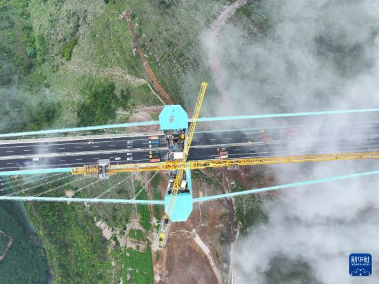 8月21日拍摄的贵州花江峡谷大桥荷载试验现场(无人机照片)。新华社记者 杨文斌 摄